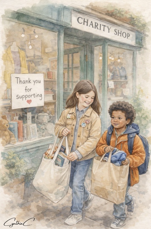Lorsque je travaille au Royaume-Uni, je soutiens régulièrement les charity shops — des lieux que je trouve profondément significatifs.